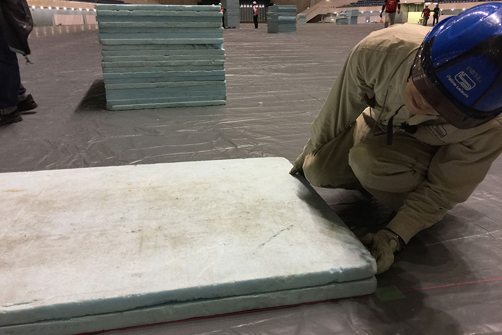 充分な厚みの断熱材を使用することで、体育館床などを冷気から守ります。